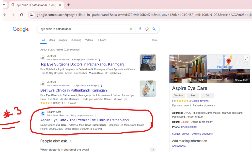 Aspire Eye Care’s Google SERP Rank#2: Here is a screen shoot displaying the Google rank of Aspire Eye Care