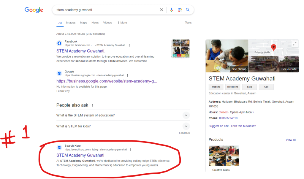 STEM Academy Guwahati’s Google SERP Rank#2: Here is a screen shoot displaying the Google rank of STEM Academy Guwahati